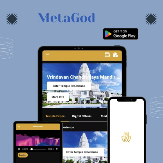 Meta God App is a unique spiritual platform that brings the divine experience of temples directly to your device. Users can explore temple information, enjoy live darshan in immersive 360° video, and feel the presence of divinity anytime, anywhere. The app also allows devotees to donate online, receive prasad delivered to their home, and stay connected with temple traditions and rituals. Meta God makes devotion more accessible, personal, and convenient in the digital age.