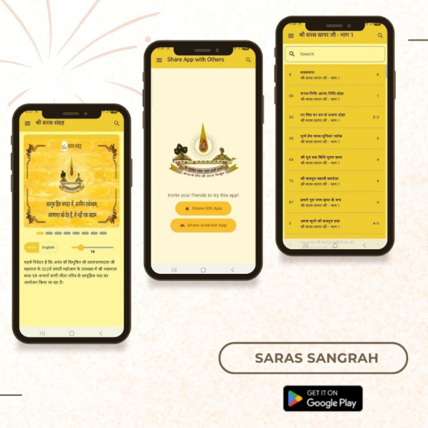 Saras Sangrah is a complete devotional collection within the app, designed to keep users spiritually connected every day. It includes Daily Darshan for divine blessings, Bhakti Sahitya Sangrah with sacred literature and scriptures, Vani Sangrah filled with inspiring teachings, Acharya Charan to follow the path of spiritual leaders, and Utsav Patang to celebrate religious festivals with joy. Saras Sangrah brings together devotion, knowledge, and culture in one easy-to-access platform for every devotee.